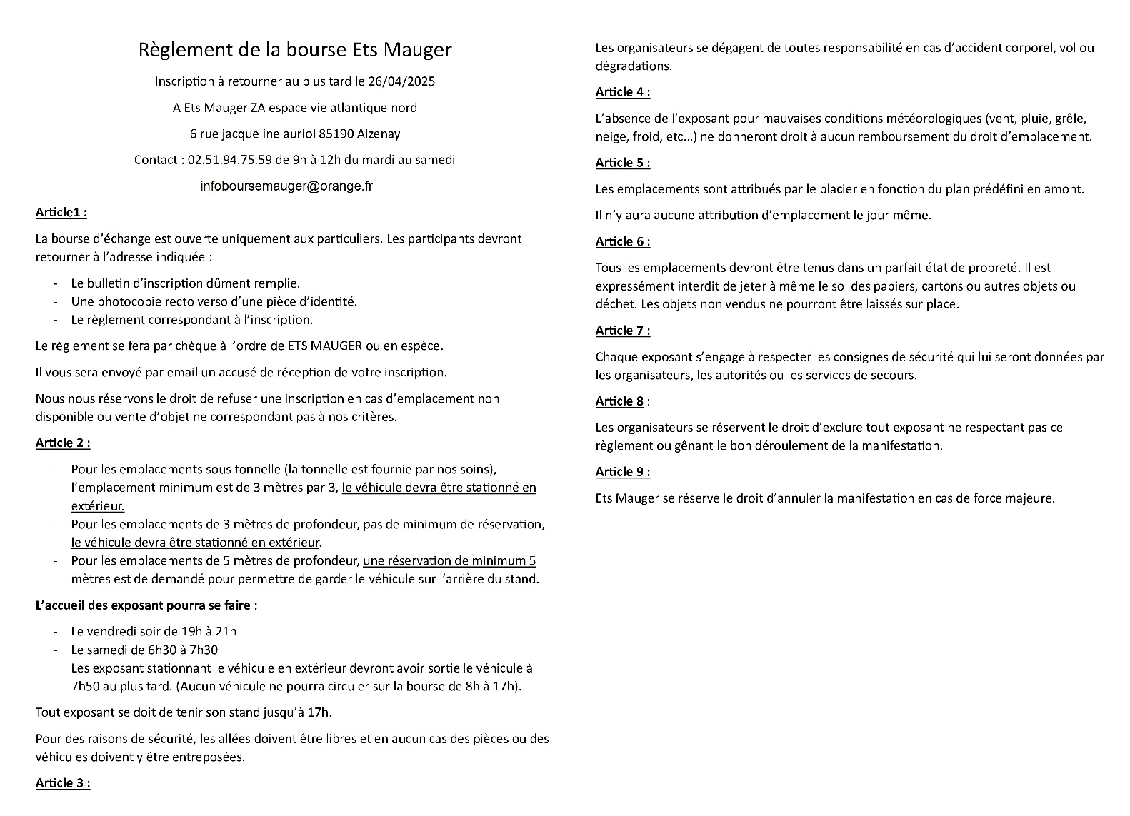 Inscription par mail a ttblancois@gmail.com ou par tel au 0671765785