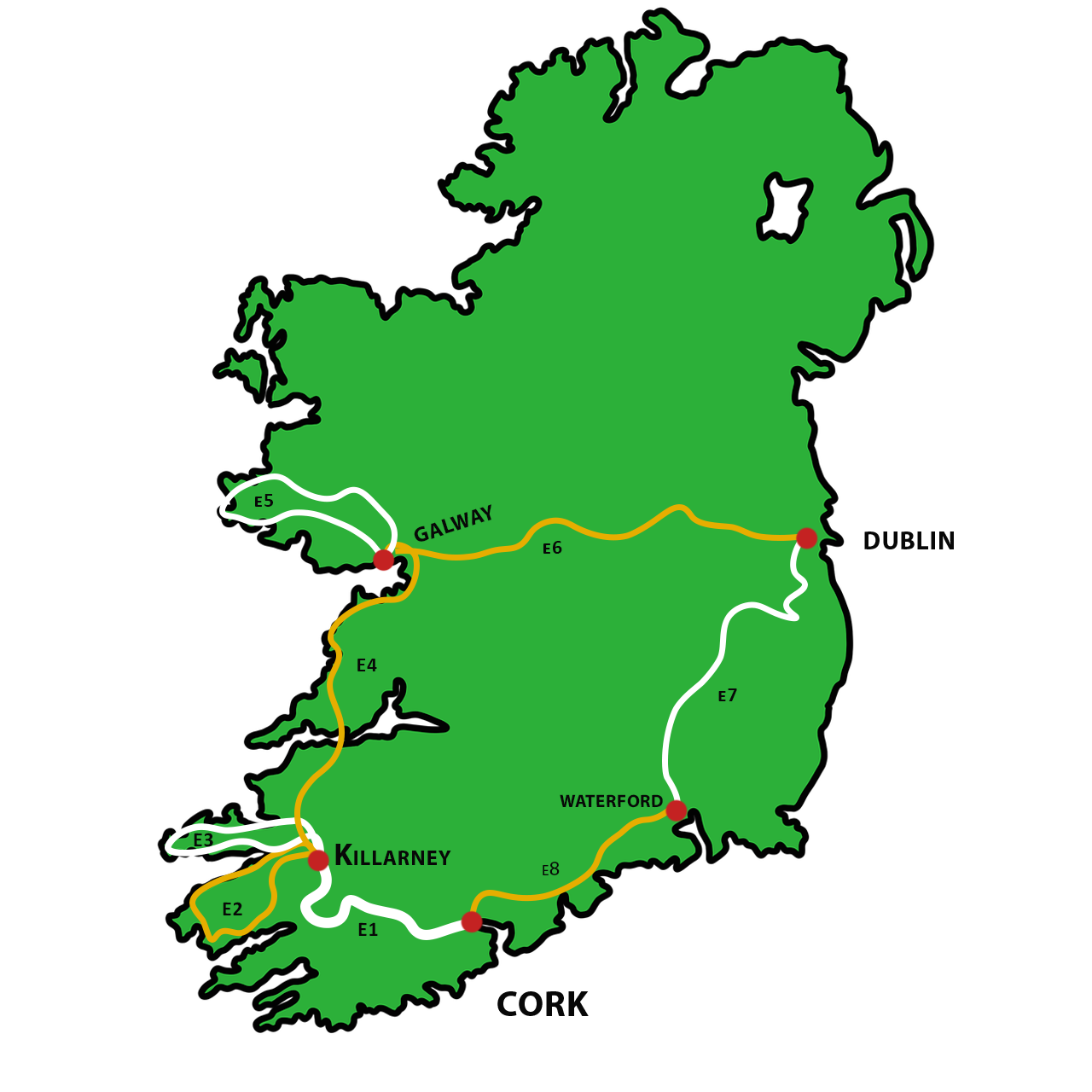 Depuis Roscoff, votre véhicule prendra la mer direction Cork, porte d’entrée de l’île verte. Ensuite, cap sur plus de 1 500 km de routes pittoresques, entre côtes sauvages, villages colorés, et falaises mythiques :