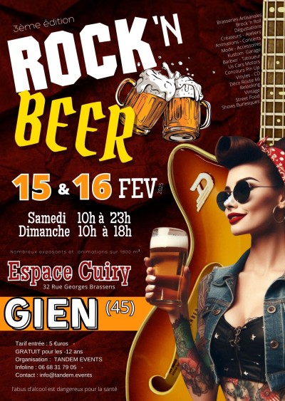 Ne manquez pas l'évènement ROCK'N BEER – Gien 2025 entre Orléans et Nevers qui aura lieu à l'espace Cuiry le 15 et 16 Février 2025 avec de nombreux exposants et animations présentées par Coco Das Vegas :