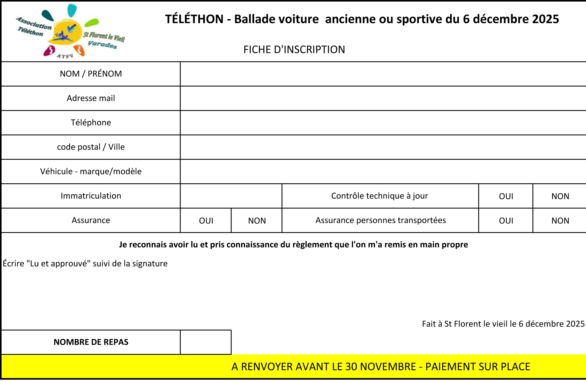 Inscription des équipages : gratuite. L'équipage s'engage à lever un minimum de 250 € de dons