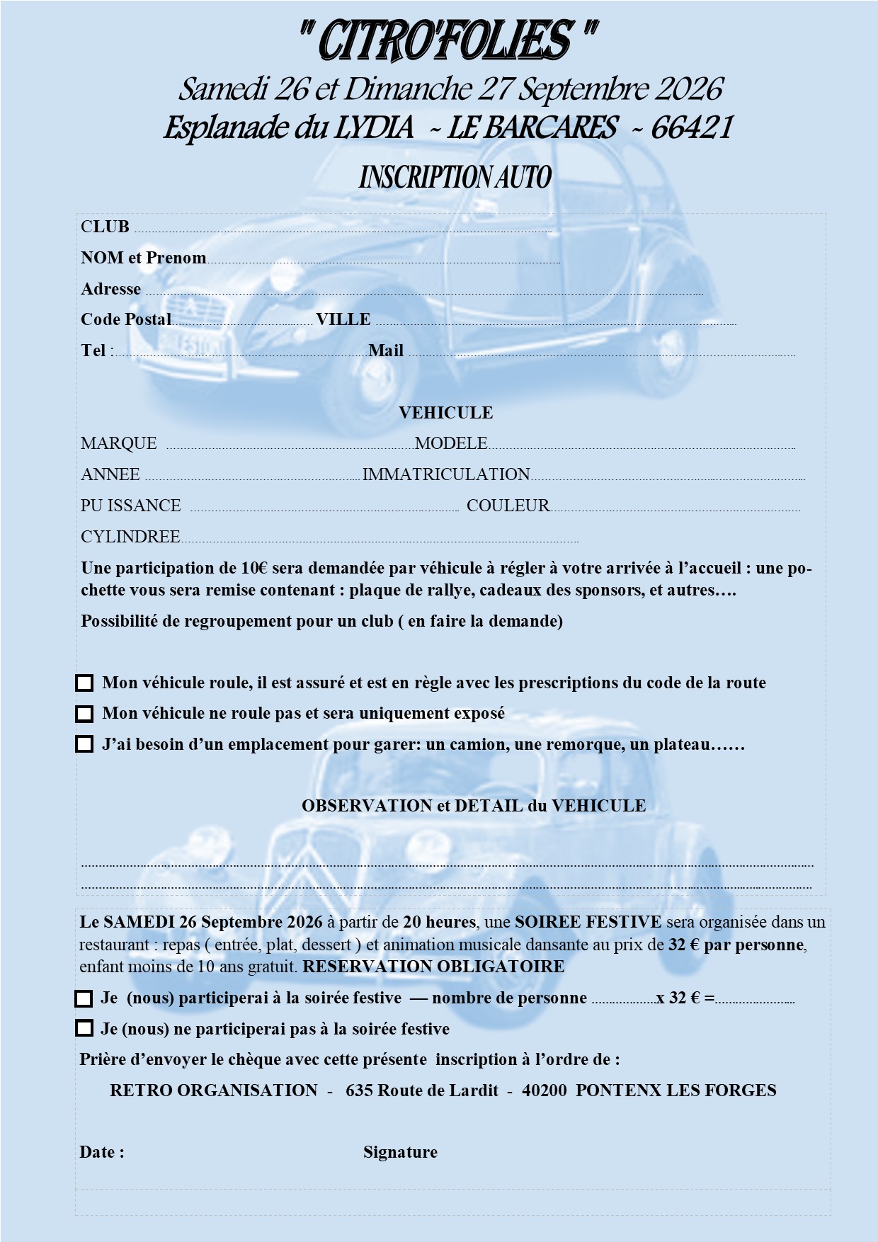 Plus d'information auprès de : Les fous du Volant - GRANGE Céline - Mail : celine69610@live.fr - Tel : 06 29 60 73 03.