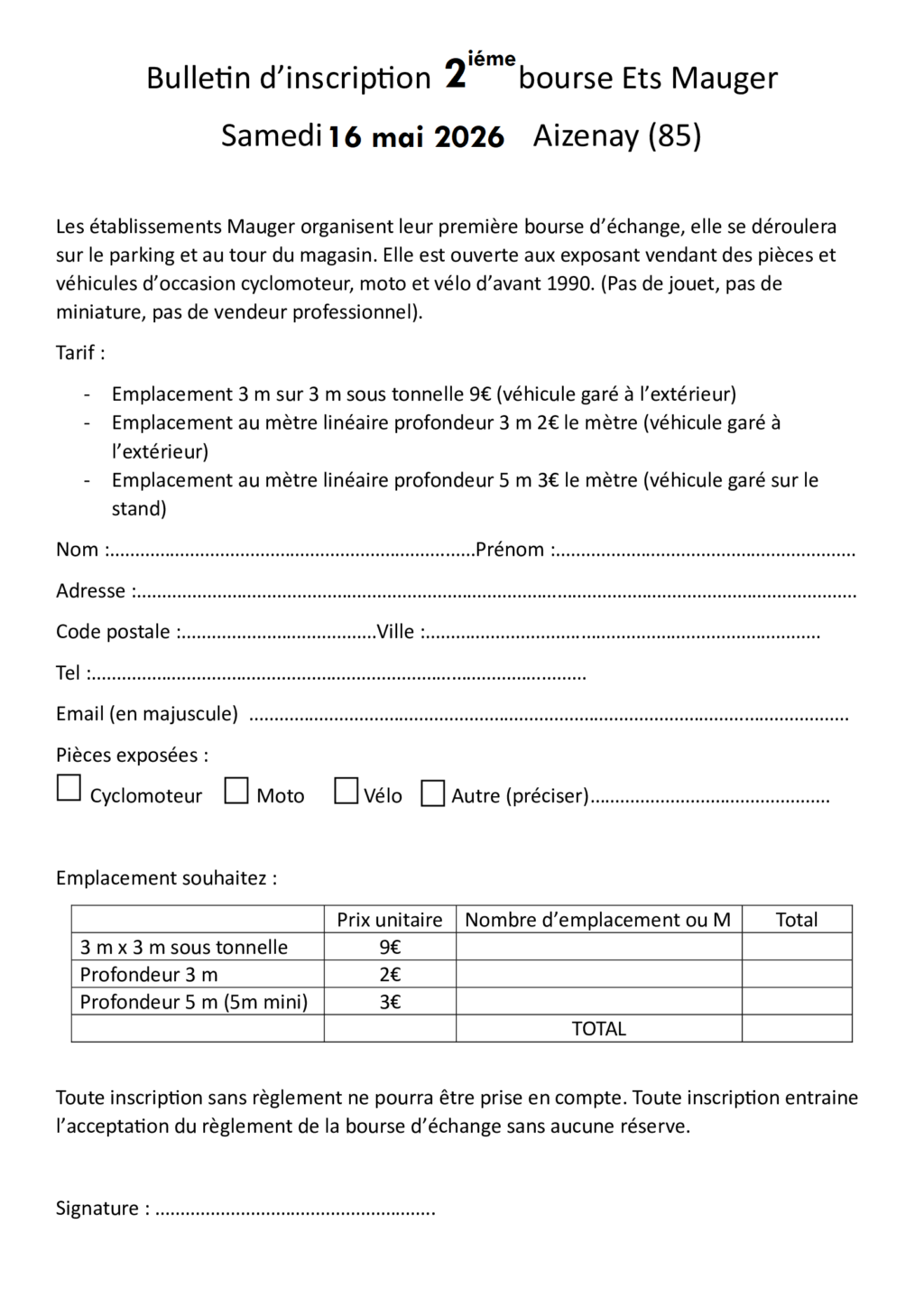 Inscription par mail a ttblancois@gmail.com ou par tel au 0671765785